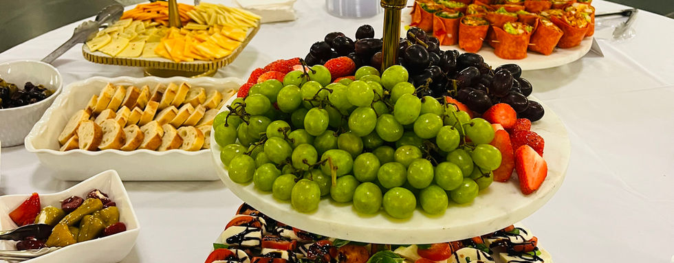 Assorted Cheeses (Cheddar Jack, Swiss, Provolone, Pepper Jack, Cheddar and/or Mozzarella) served with Crackers and Mediterranean Olives or Grapes.